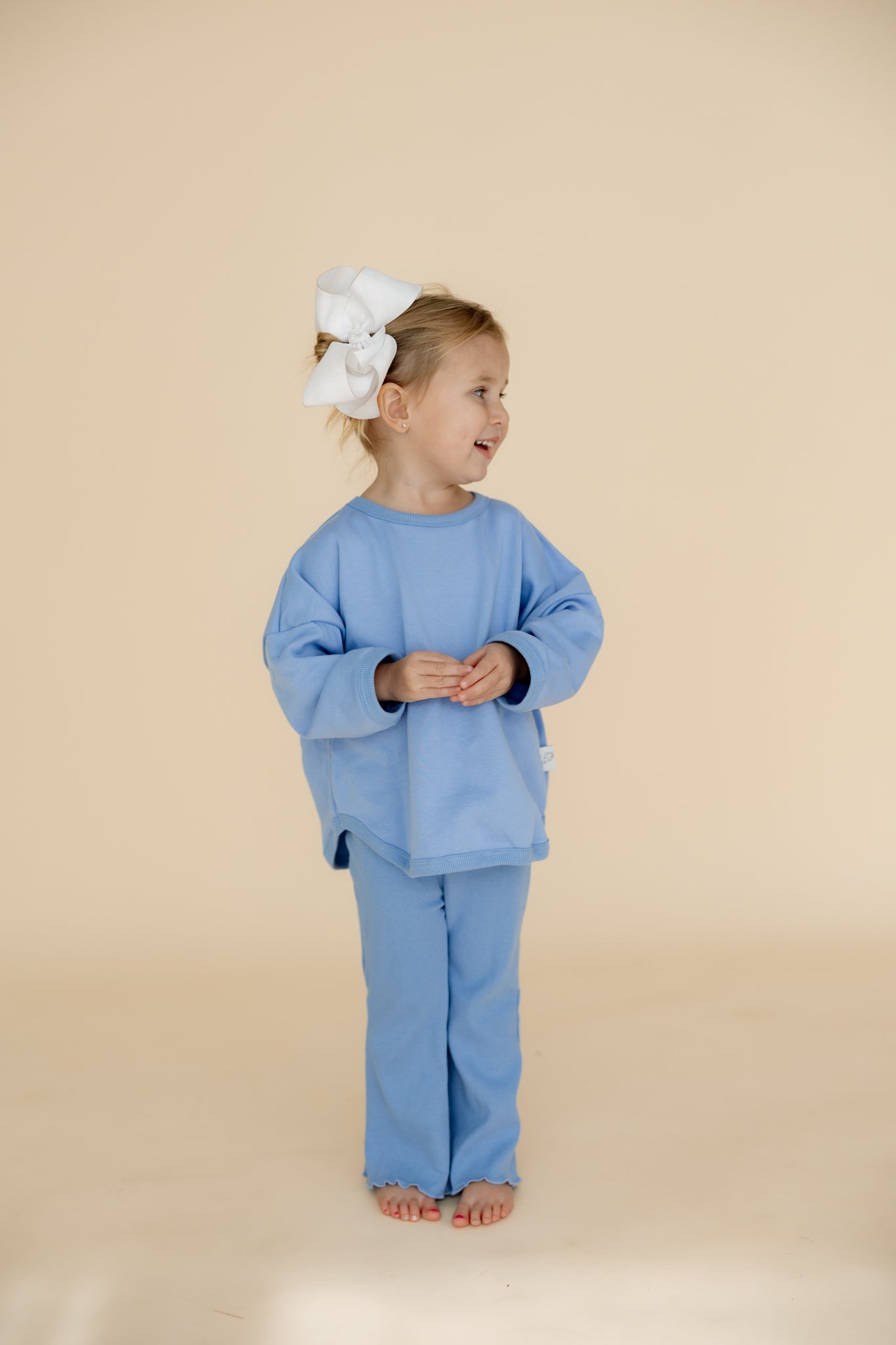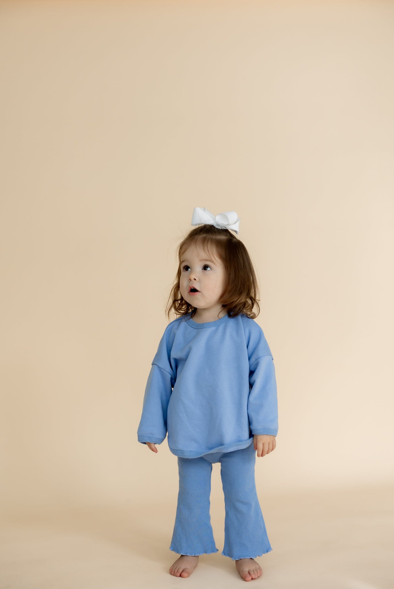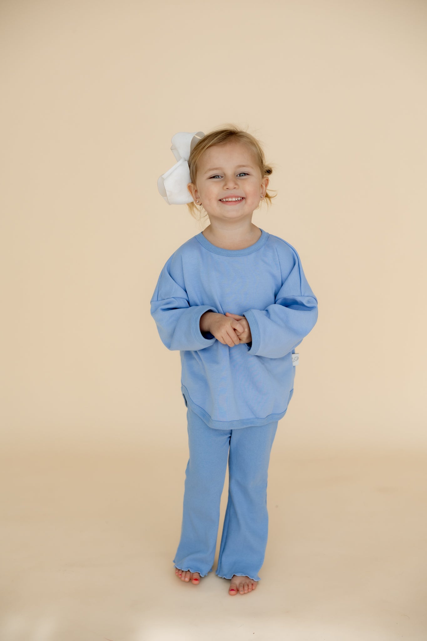 Stay comfy and stylish in the Isla Set, made from 100% soft cotton. This playful duo features a ribbed-trimmed, boxy oversized top paired with matching ribbed flare leggings—perfect for everyday casual vibes. Add a custom monogram to give your set a personal twist and stand out your way!