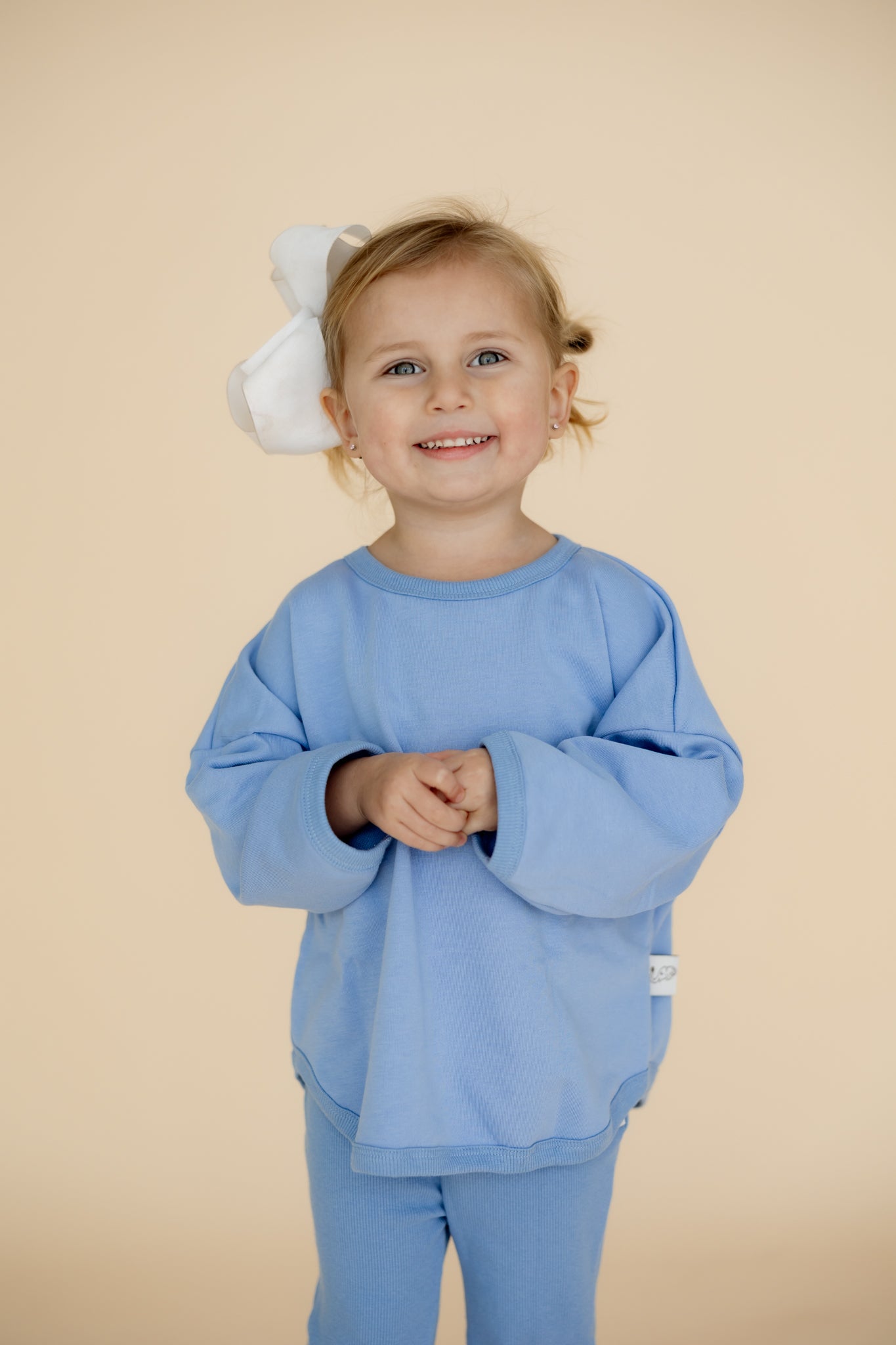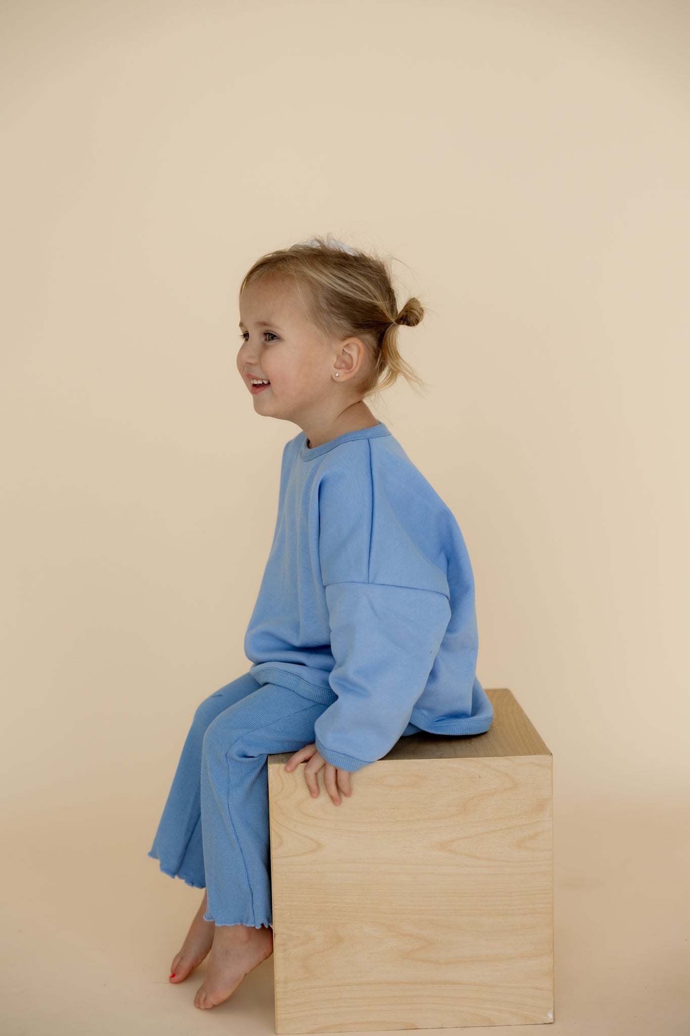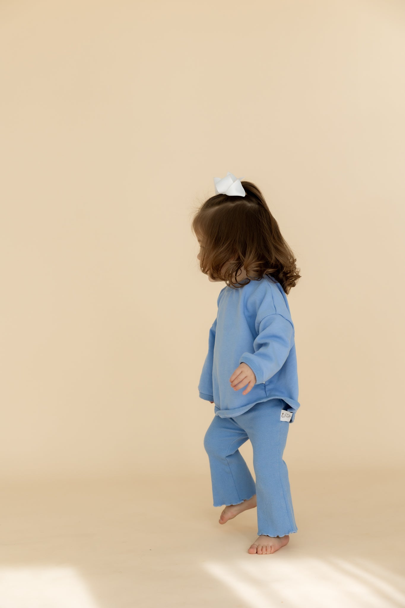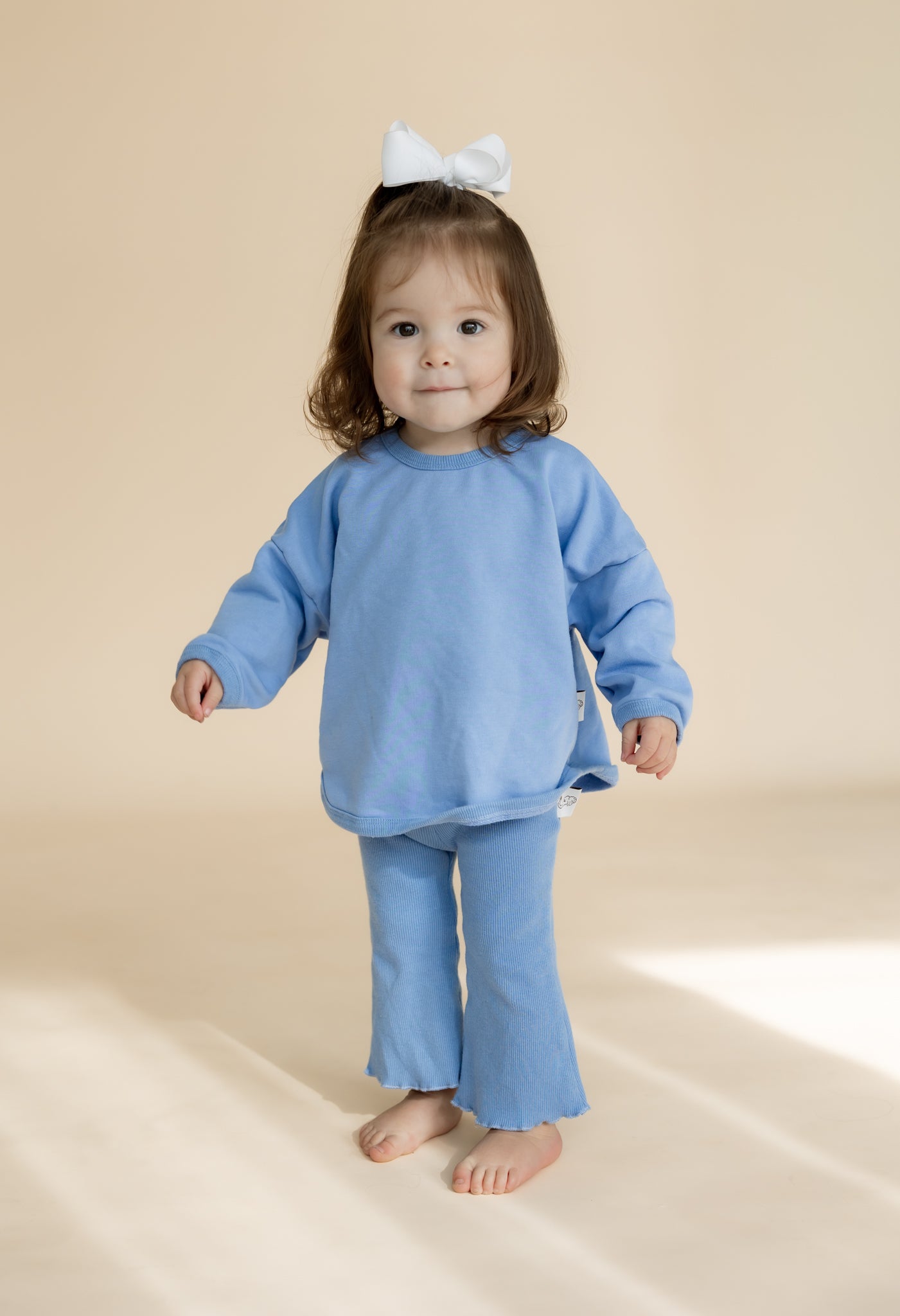 Stay comfy and stylish in the Isla Set, made from 100% soft cotton. This playful duo features a ribbed-trimmed, boxy oversized top paired with matching ribbed flare leggings—perfect for everyday casual vibes. Add a custom monogram to give your set a personal twist and stand out your way!