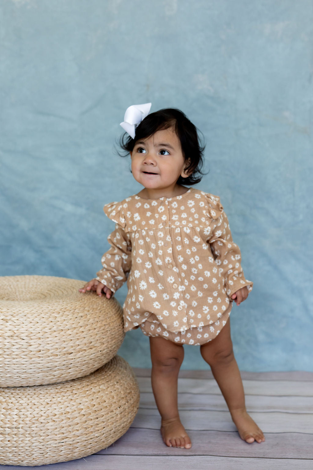 Linden Blouse & Bloomer Set | Tiny Blooms Sand