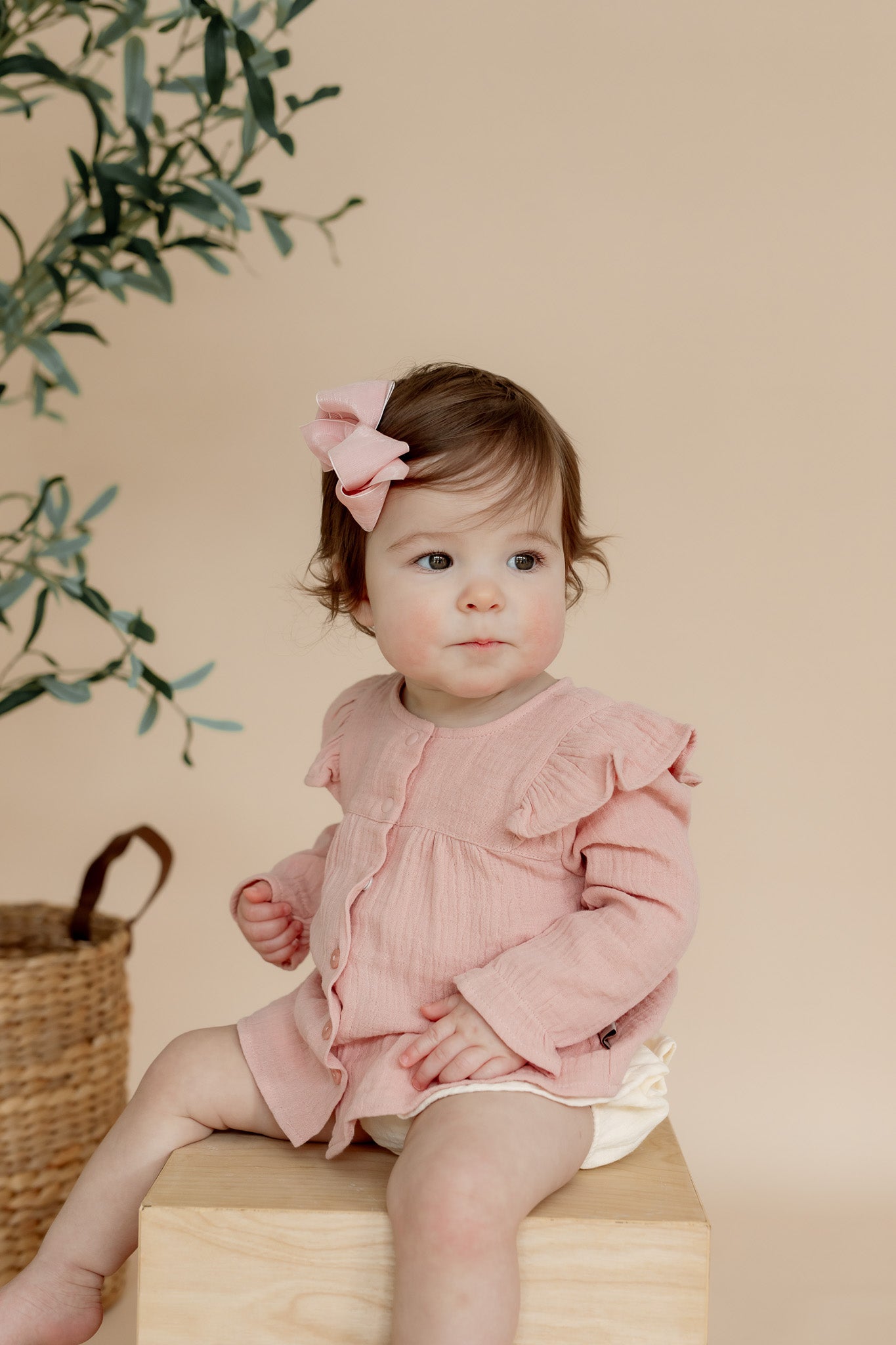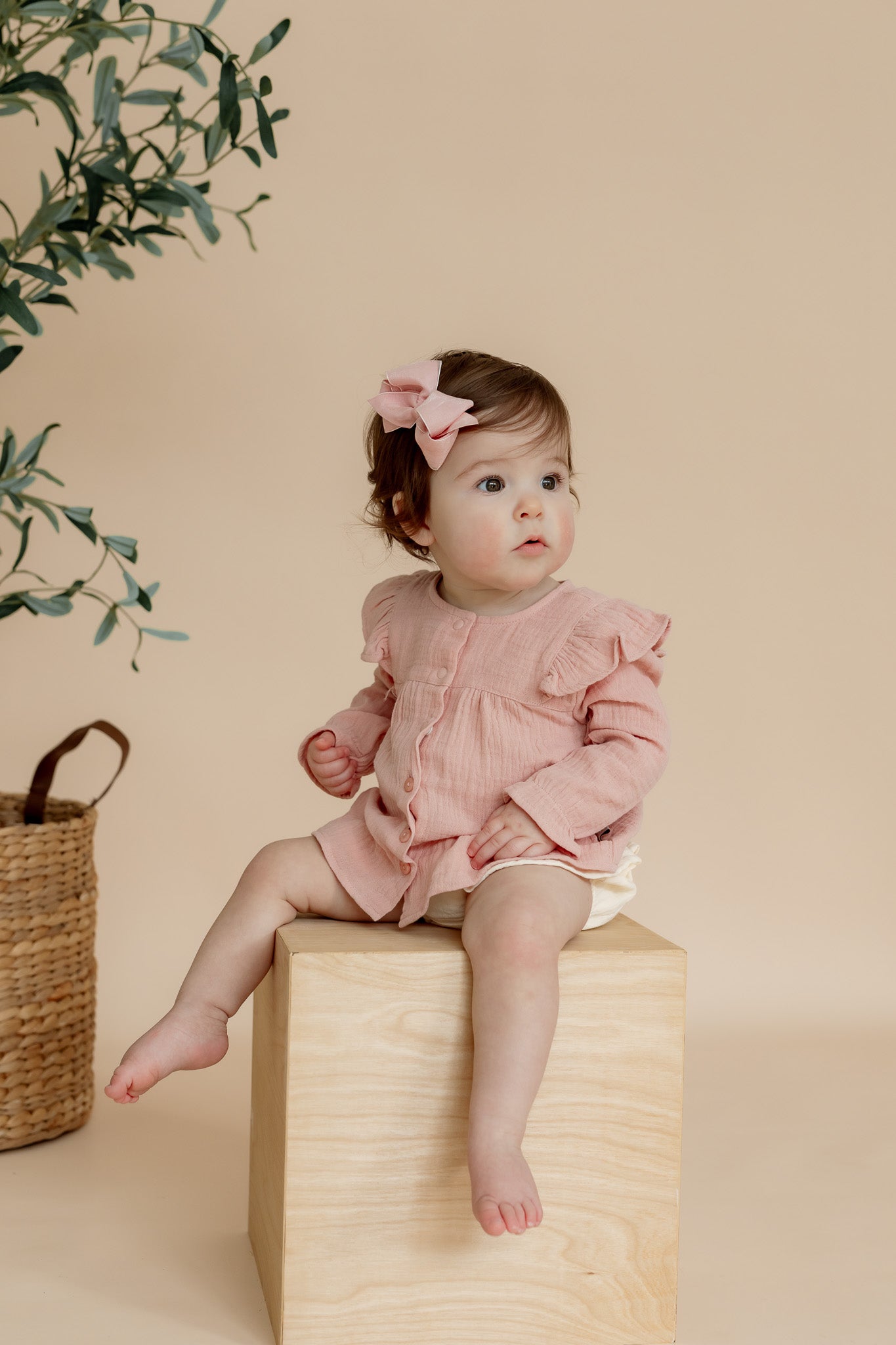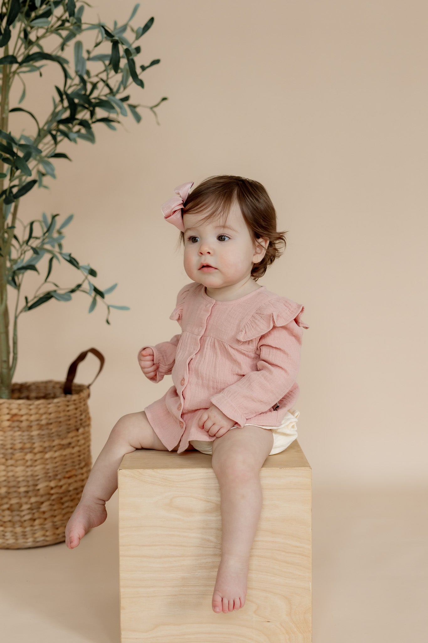 The Linden Blouse is the perfect blend of comfort and style. Made with 100% cotton gauze, this blouse is both breezy and breathable, providing all-day comfort. Its snap button closure allows for easy on and off, making it a practical choice for busy parents.