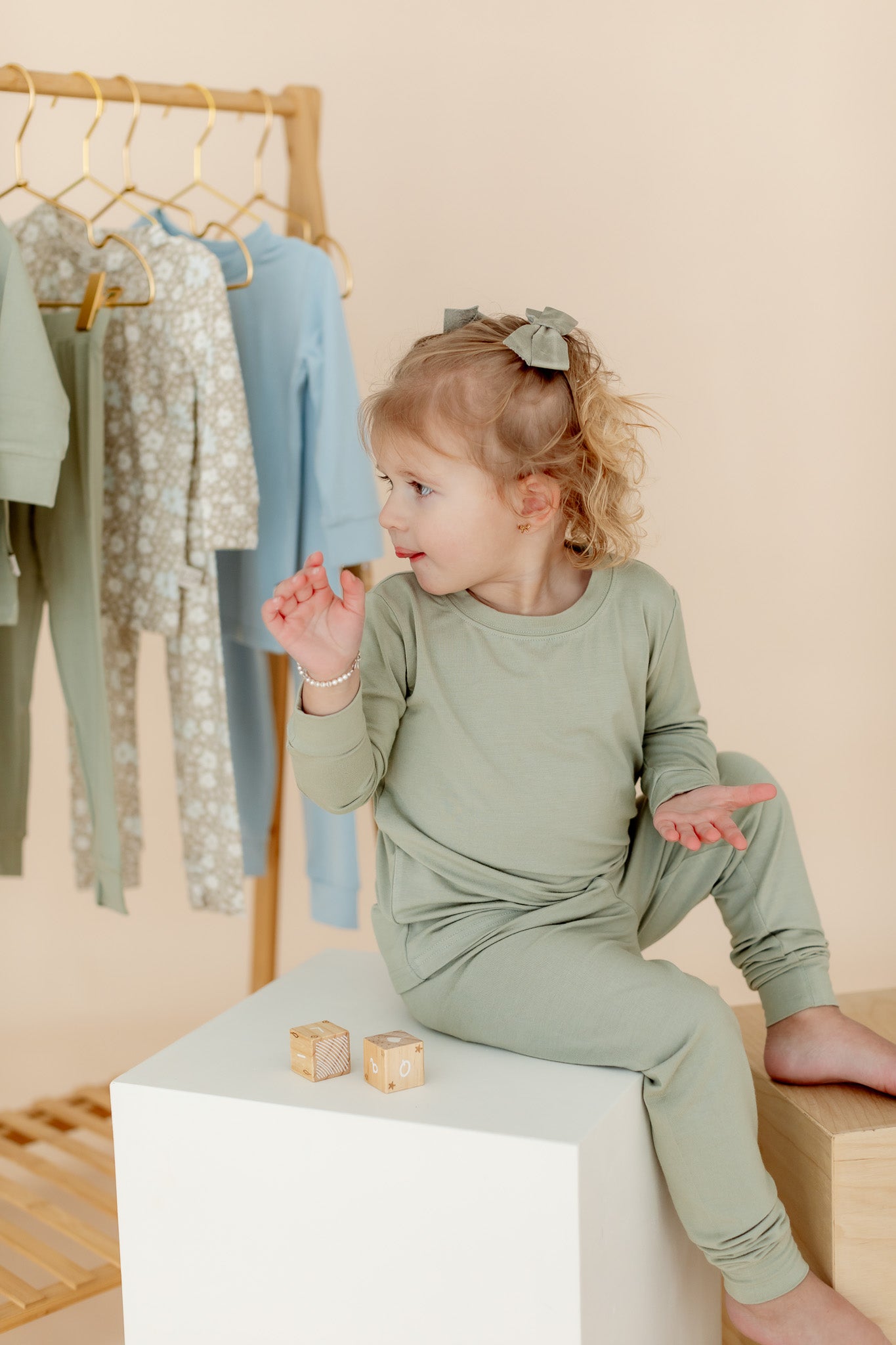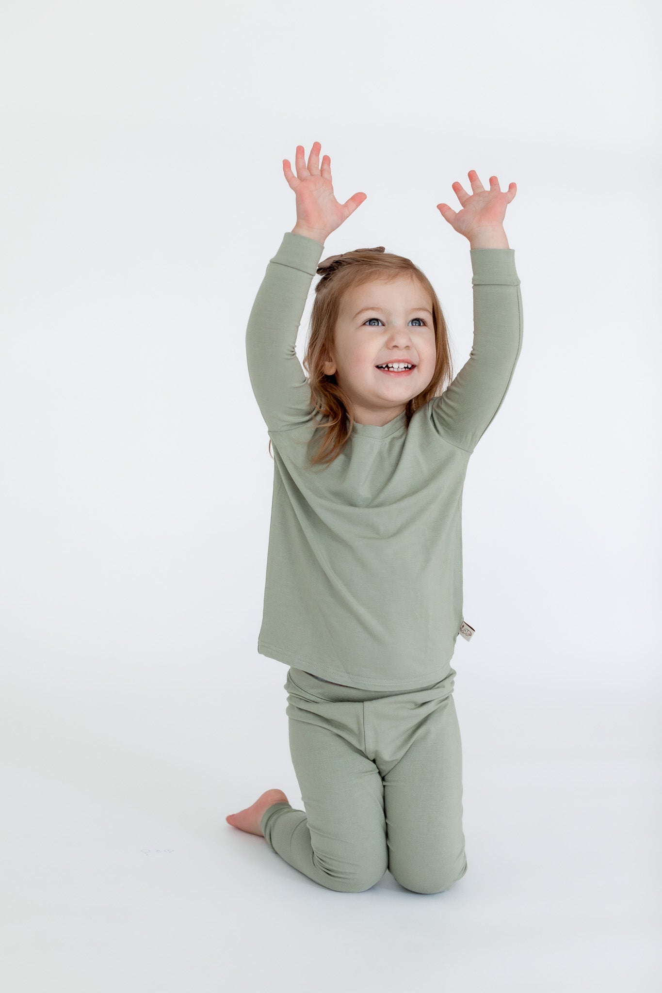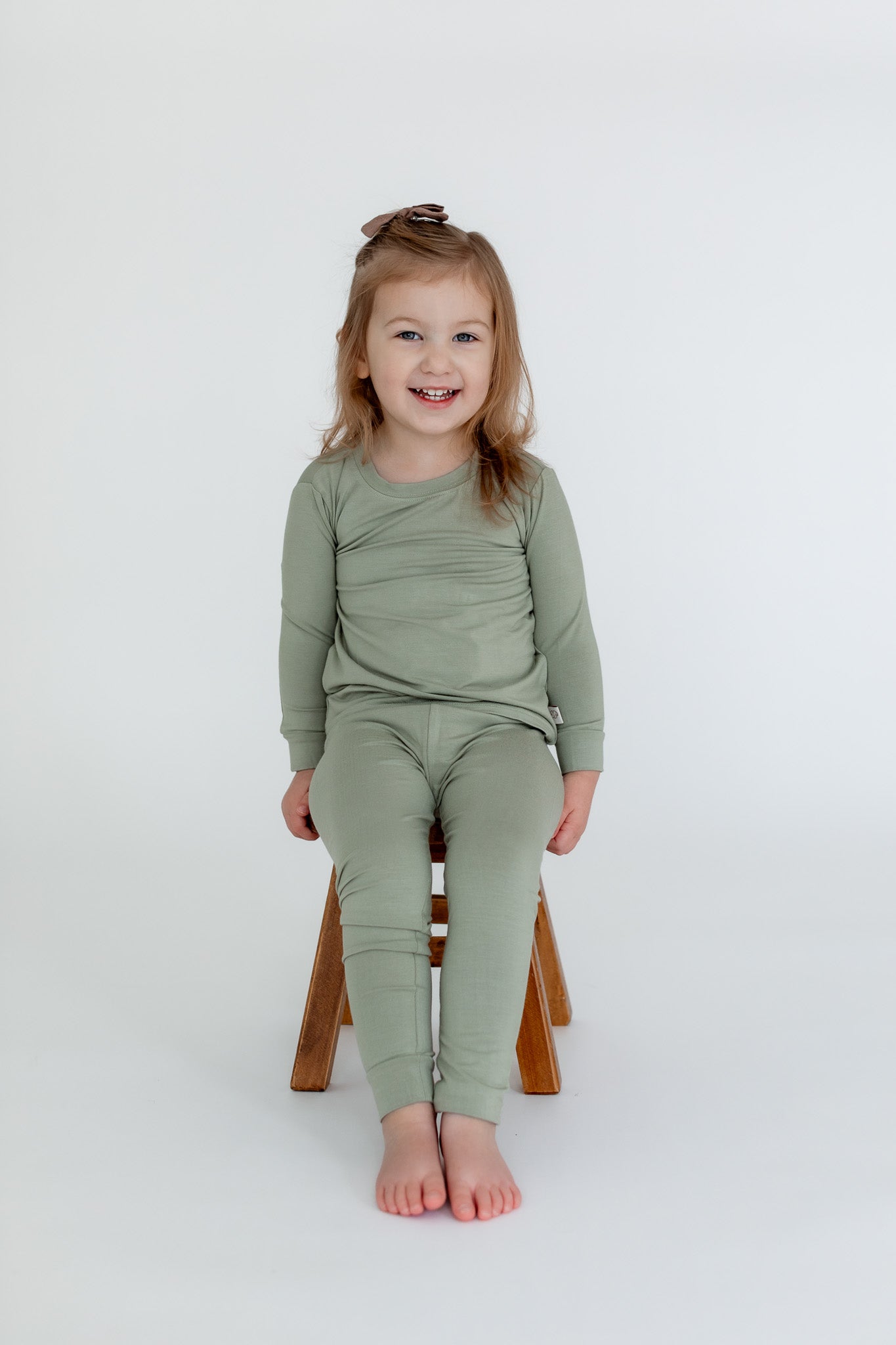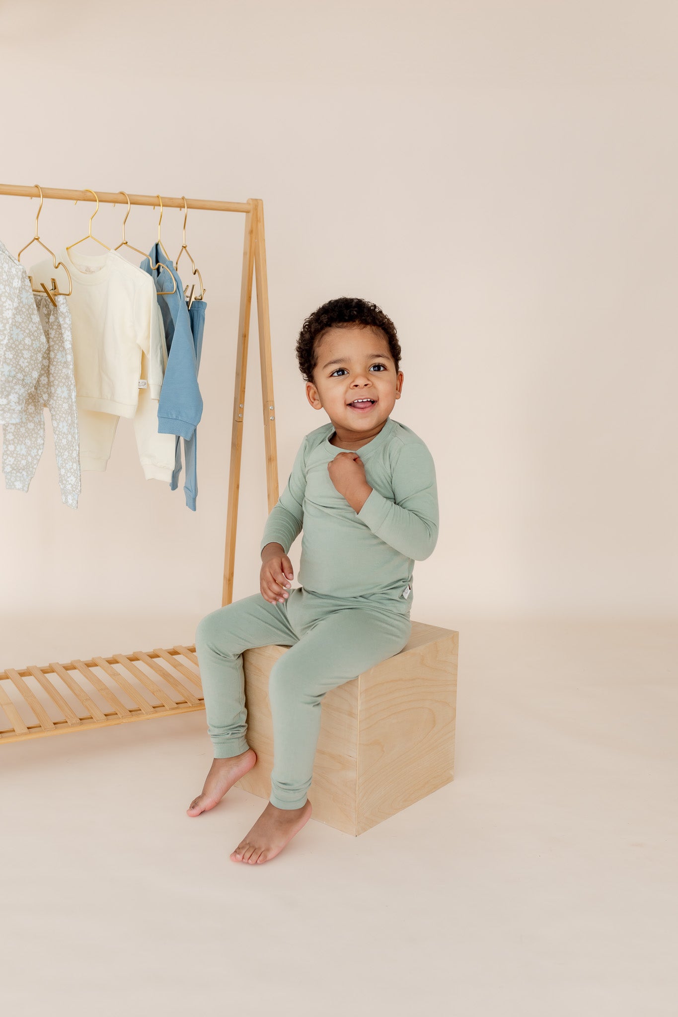 The Mineral Green Two Piece Pajama is the perfect sleepwear for your little ones. Made with 95% viscose bamboo and 5% spandex, it provides maximum comfort and a soft touch. Your child can sleep peacefully without any irritation from tags. Trust in our product for a better night's sleep. A must-have for your little ones.