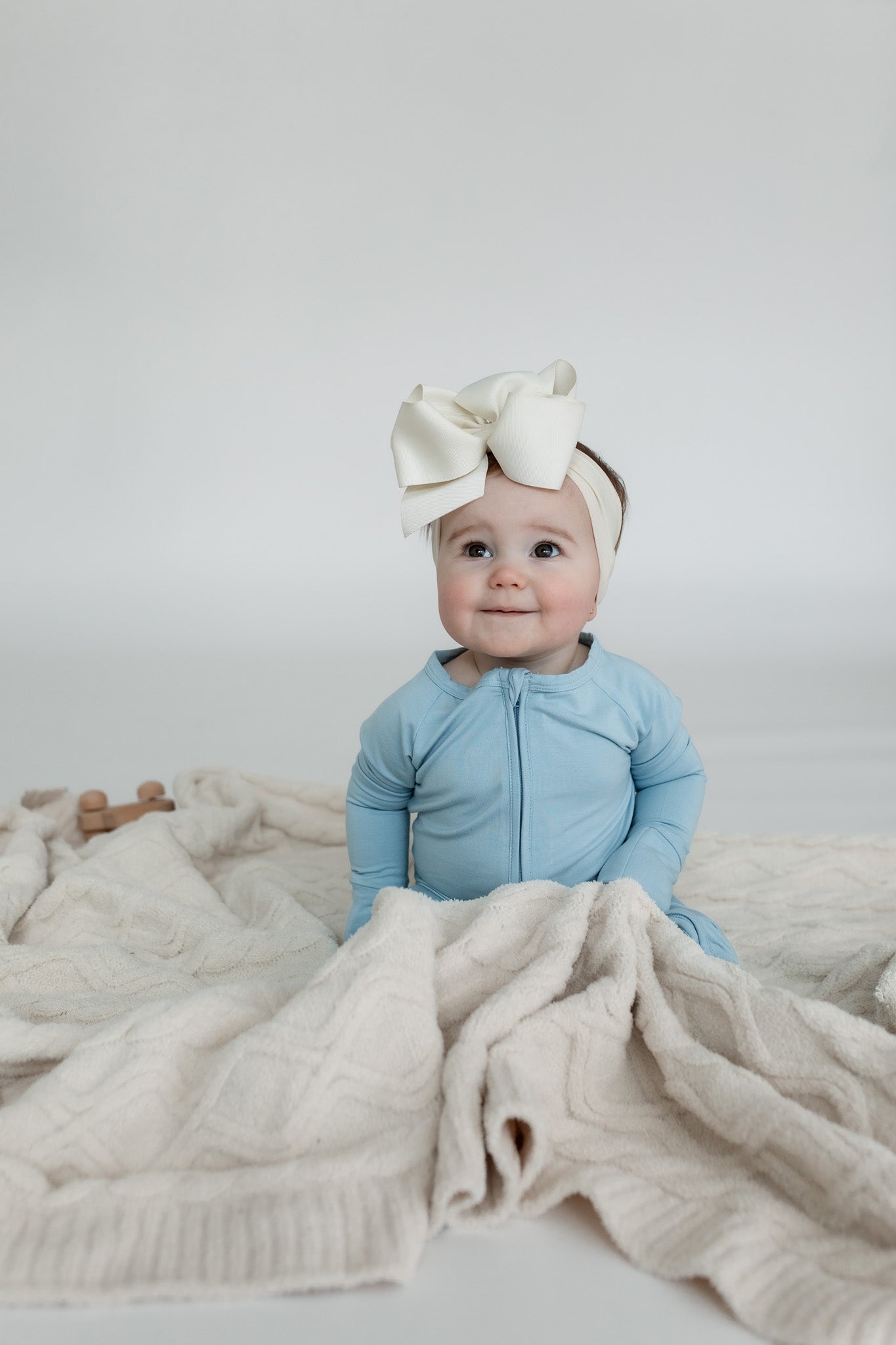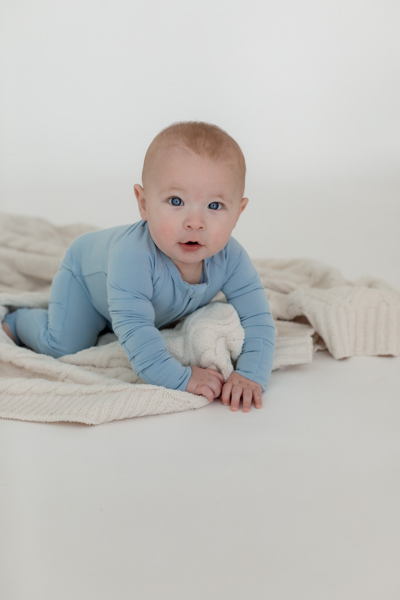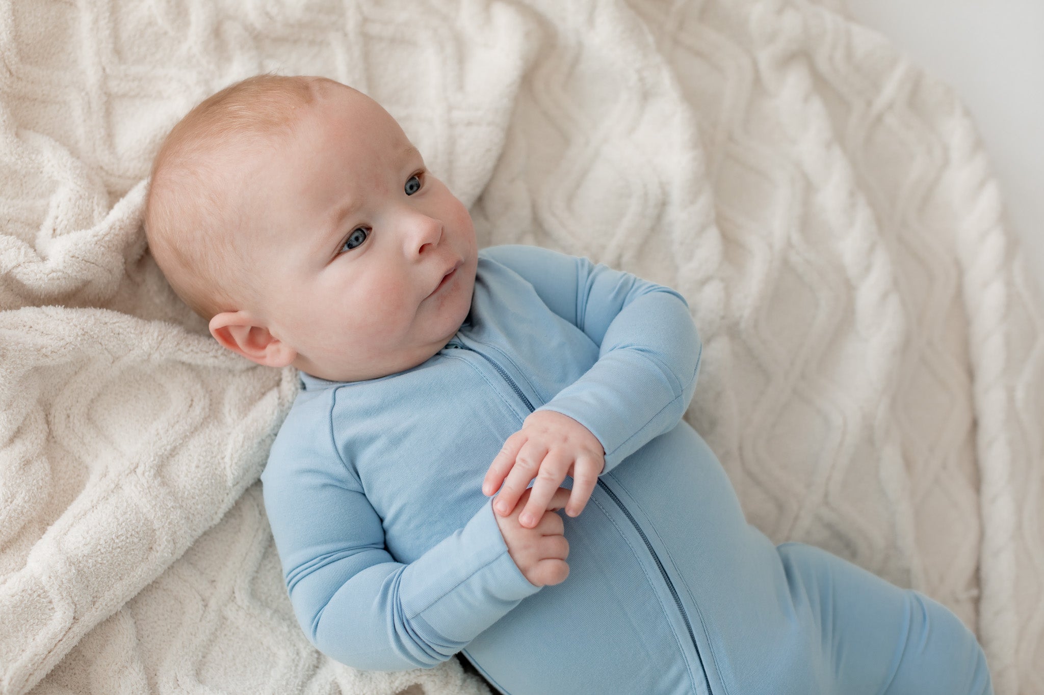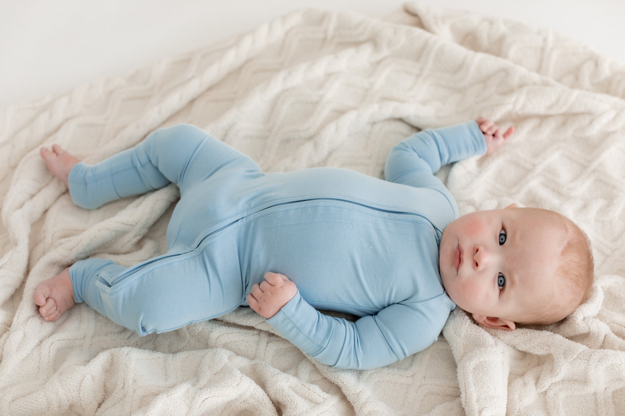 The Niagara Mist Zipper Sleeper is the perfect bamboo baby sleepwear for newborns, infants, and toddlers who deserve cozy, restful nights. Made with 95% viscose from bamboo and 5% spandex, this pajama is soft, breathable, and stretchy for every wiggle and cuddle. With fold-over mittens, footies, and a two-way zipper, this pajama is parent-friendly for quick changes and baby-safe for all-night wear.