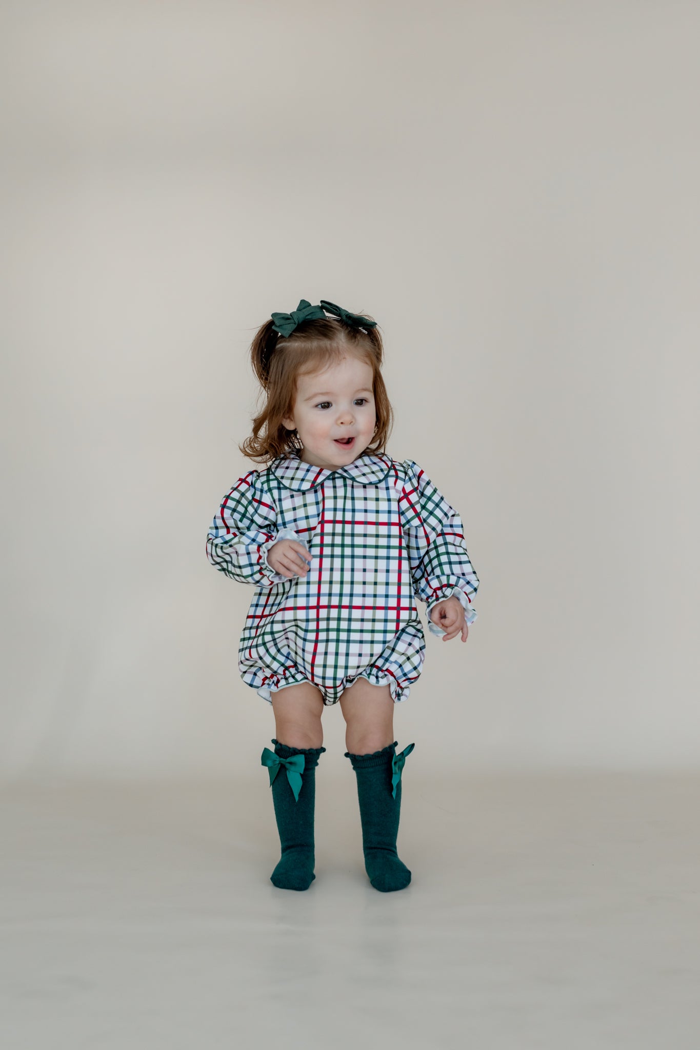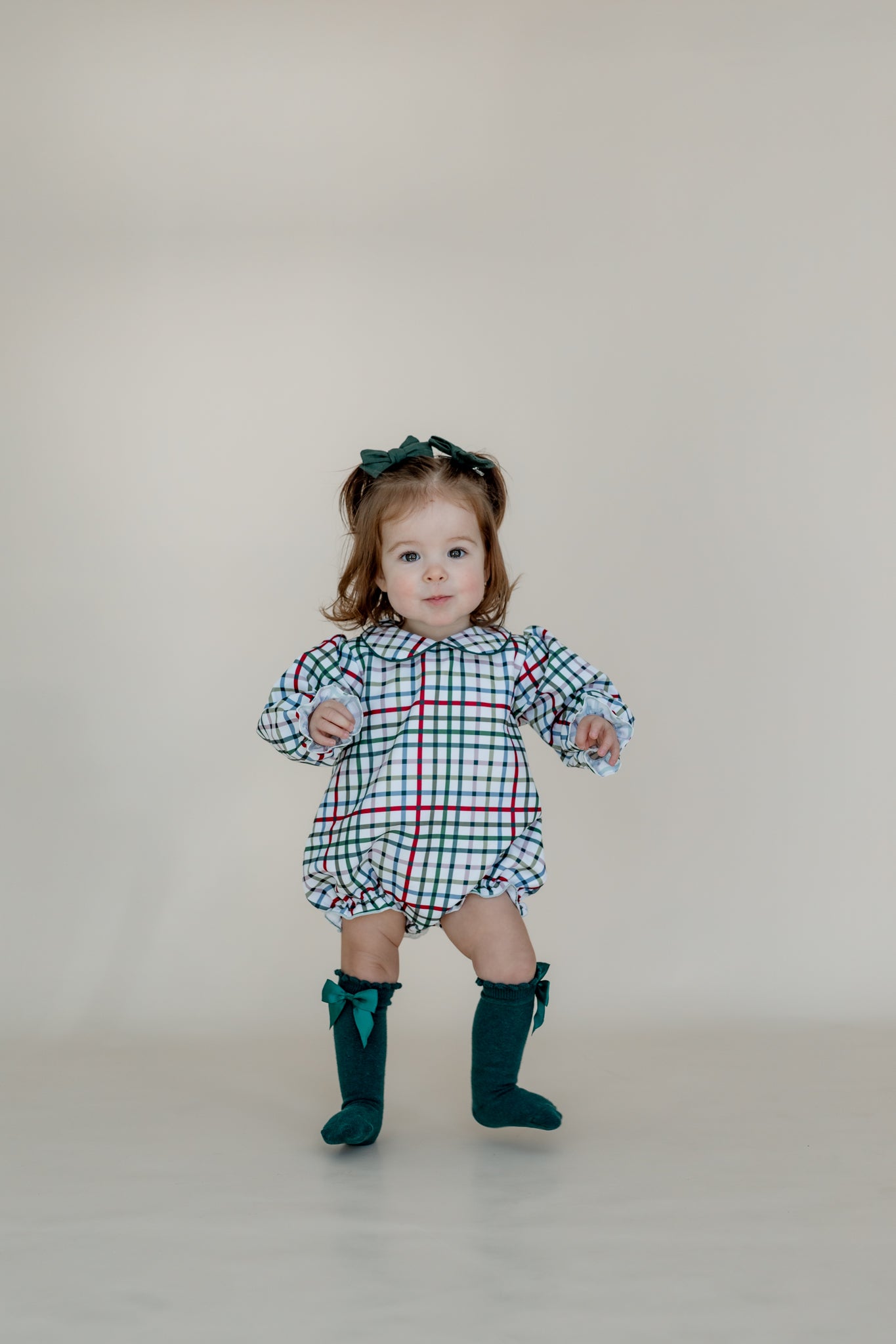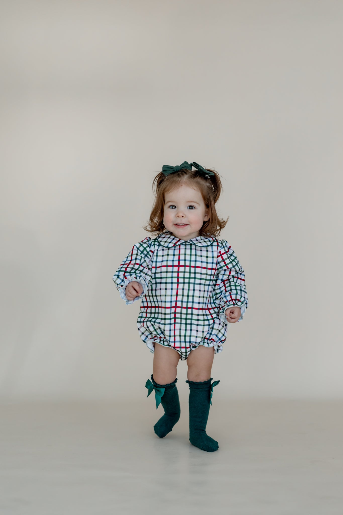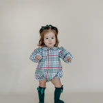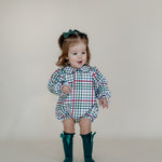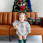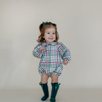 Capture the holiday magic with our Vintage Plaid Bubble! Crafted from 100% woven cotton, this cozy little outfit holds its shape with just the right snug fit—perfect for Santa photos or family Christmas memories. Its timeless plaid pattern adds charm and festive cheer, making it the cutest must-have for your little one's holiday wardrobe.