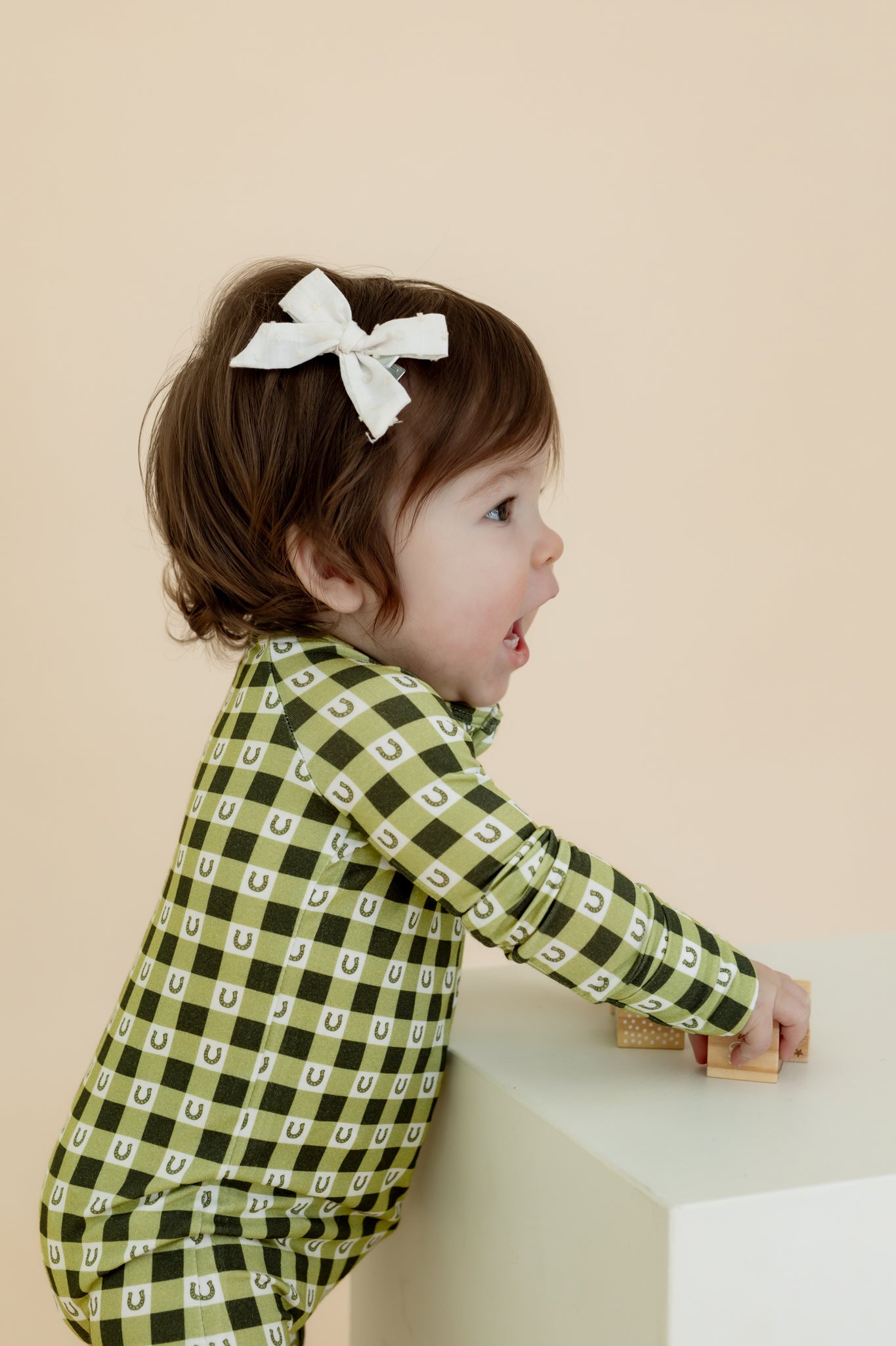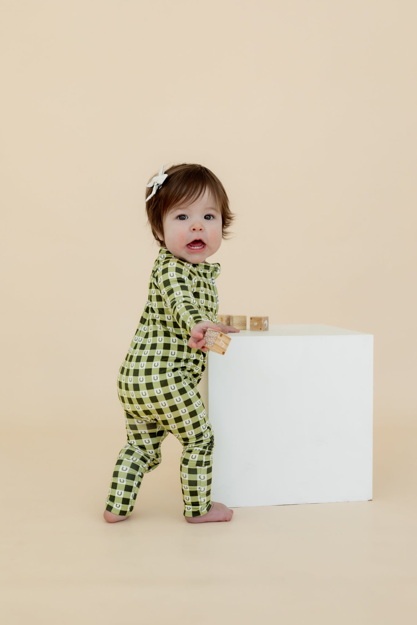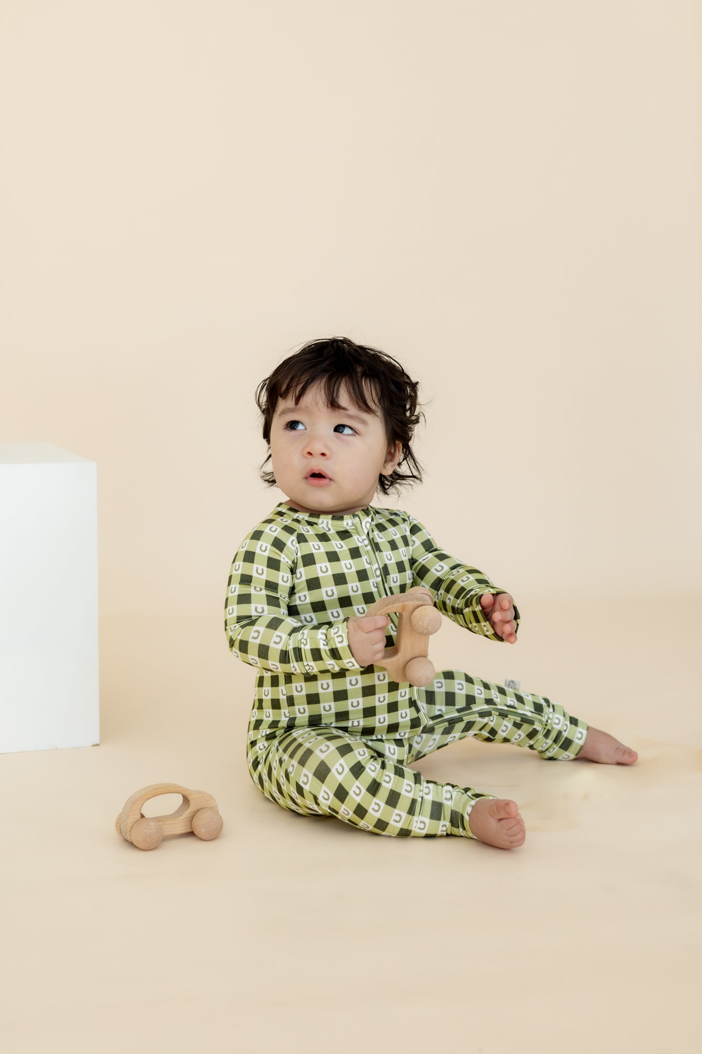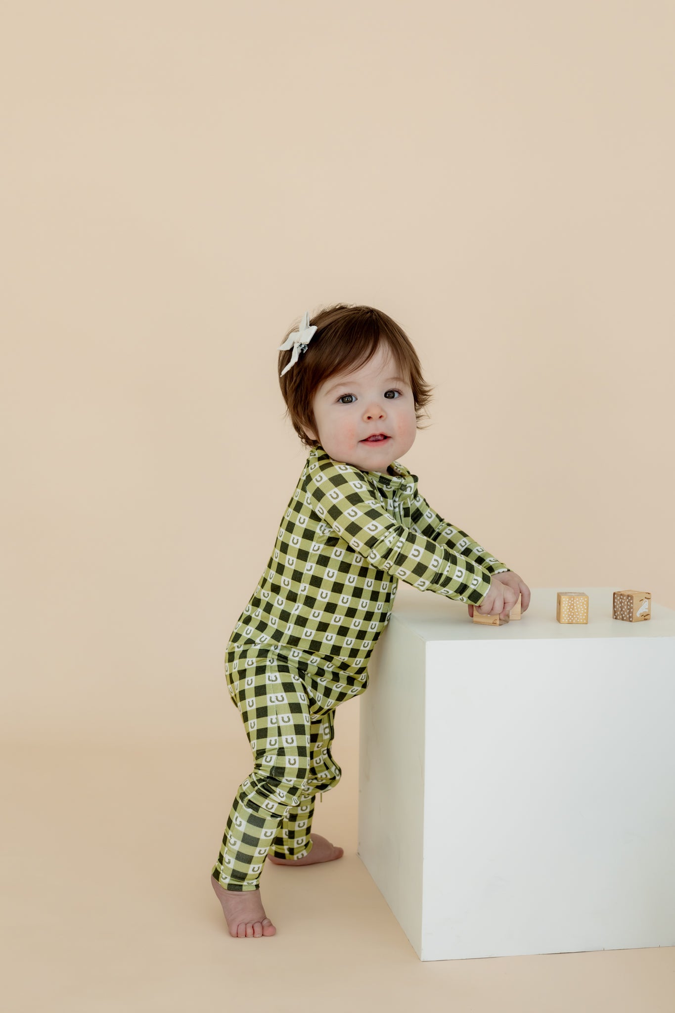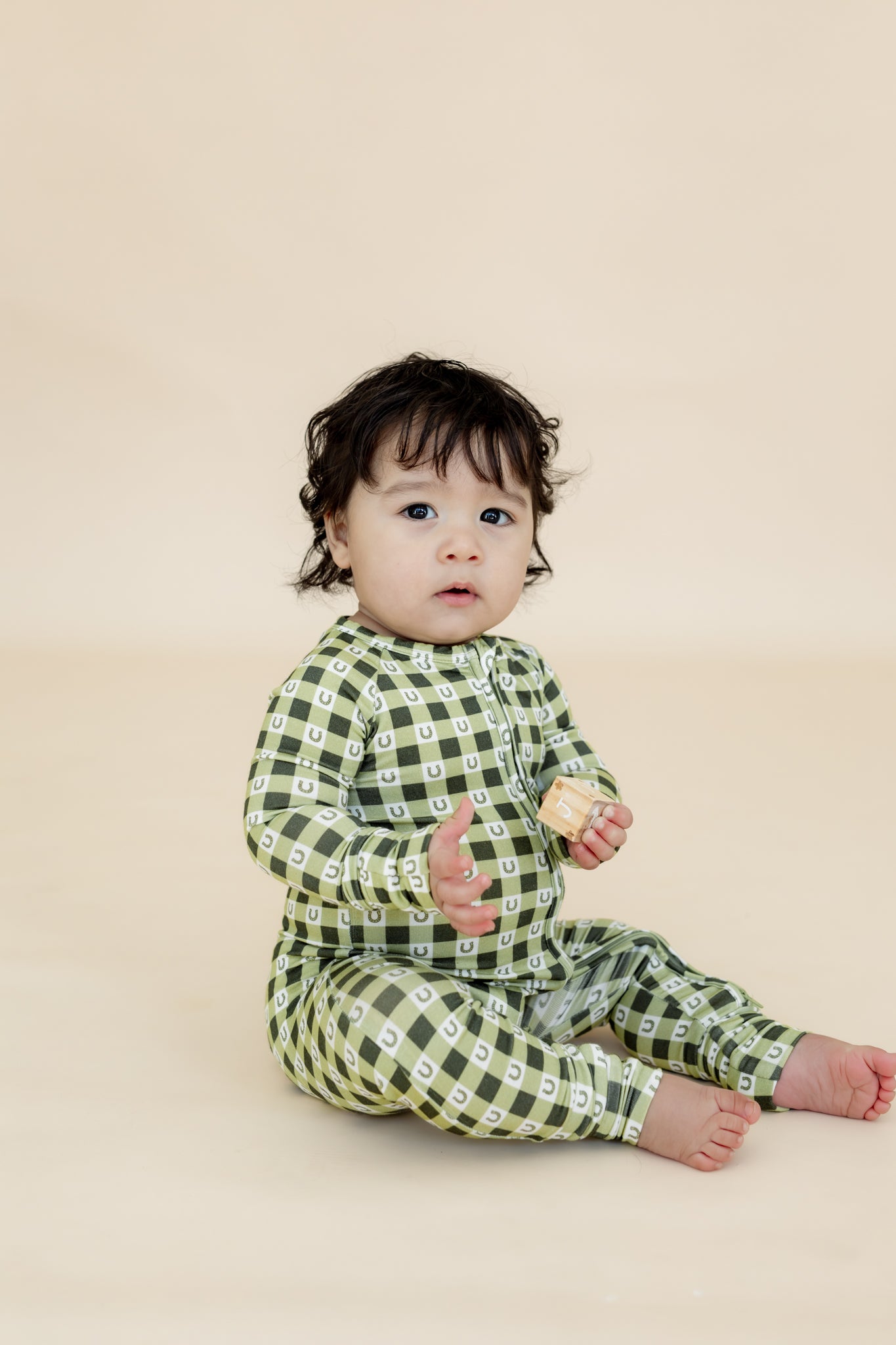 Featuring hand-drawn gingham prints by a local artist, the Lucky Gingham Zipper Sleeper makes everyday wear feel special and adds a playful touch to bedtime.
