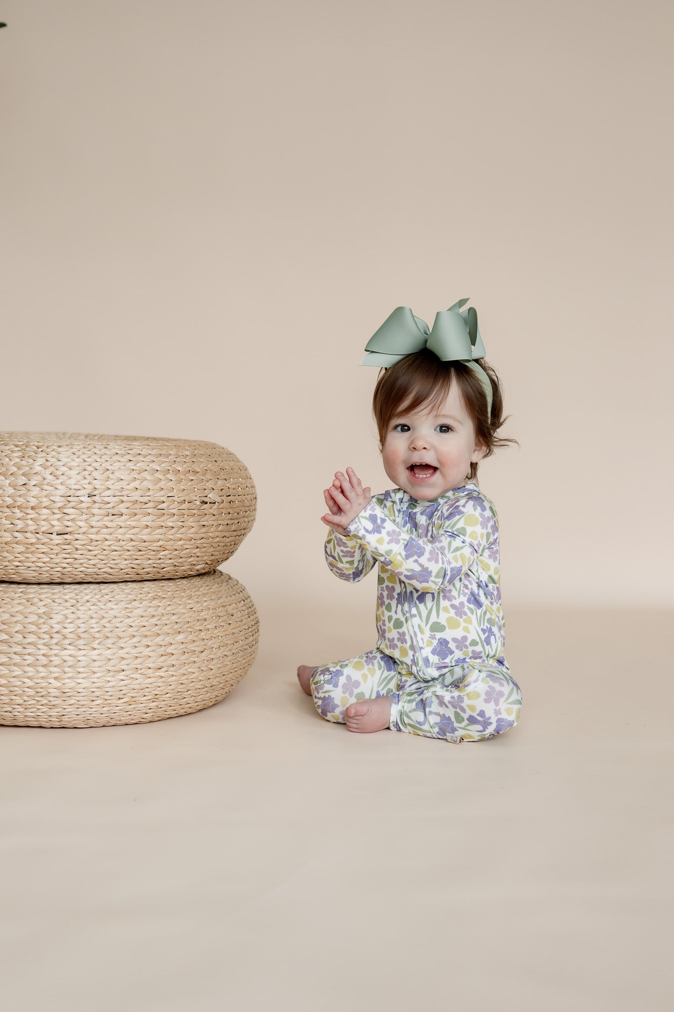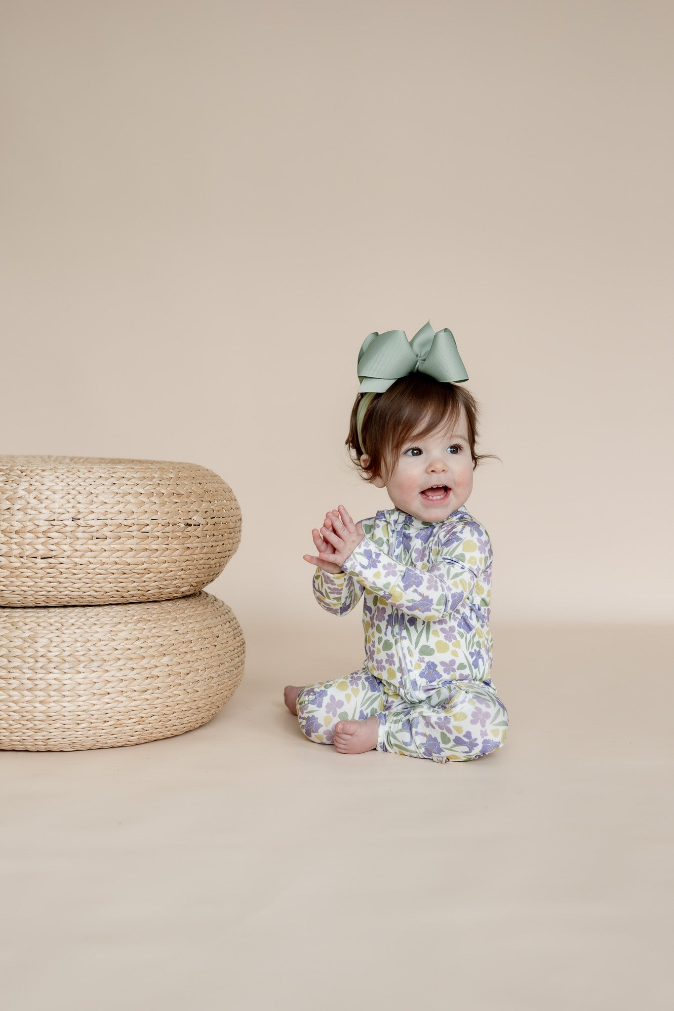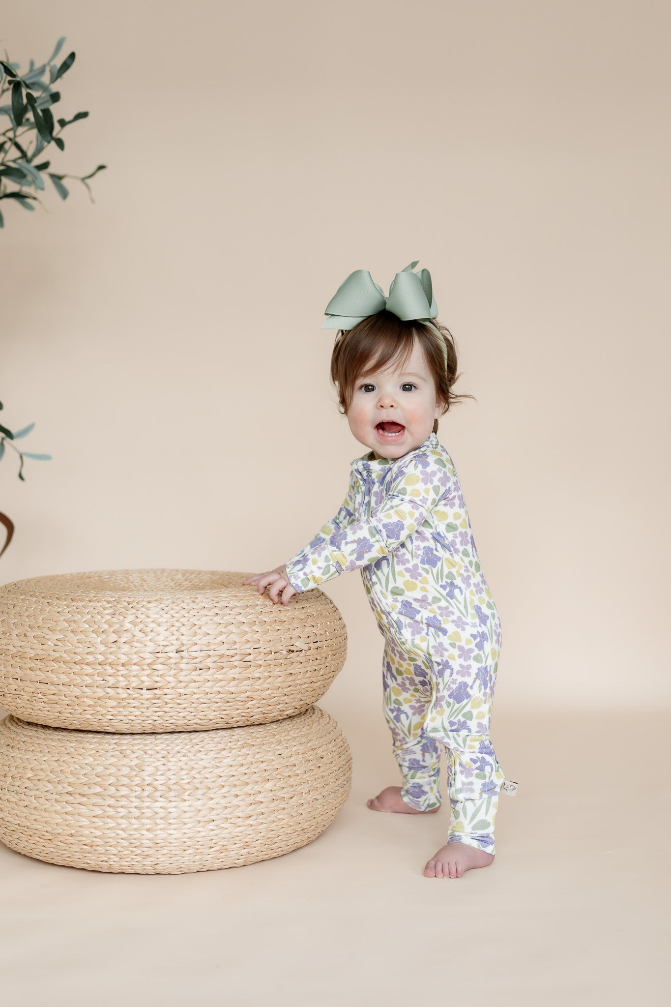 Featuring hand-drawn floral prints by a local artist, the Heirloom Florals Zipper Sleeper makes everyday wear feel special and adds a playful touch to bedtime.