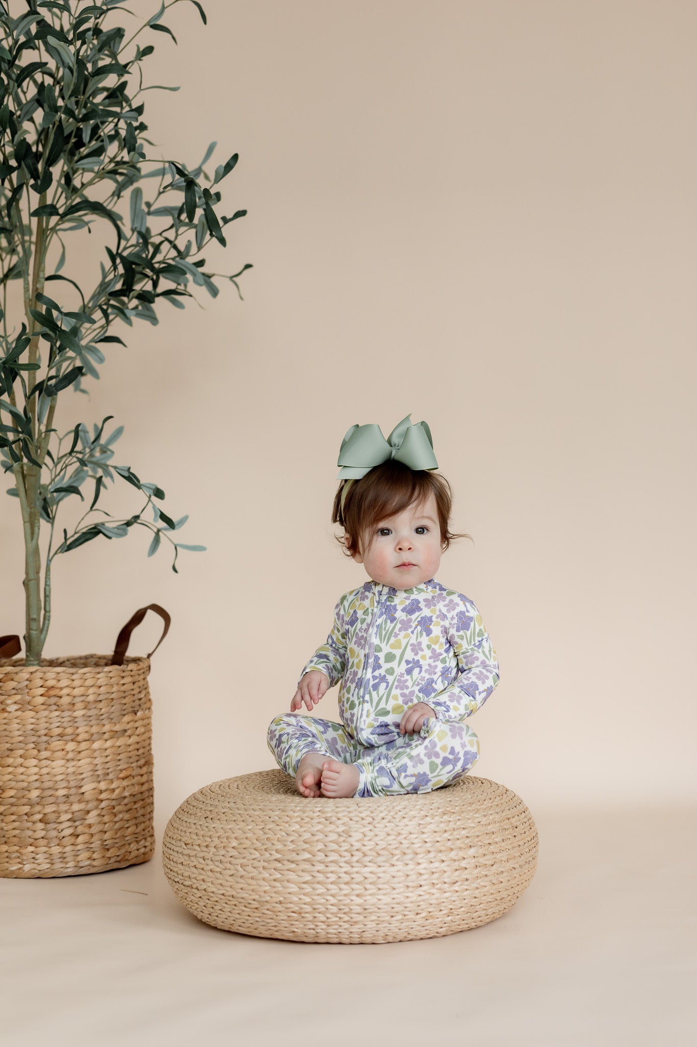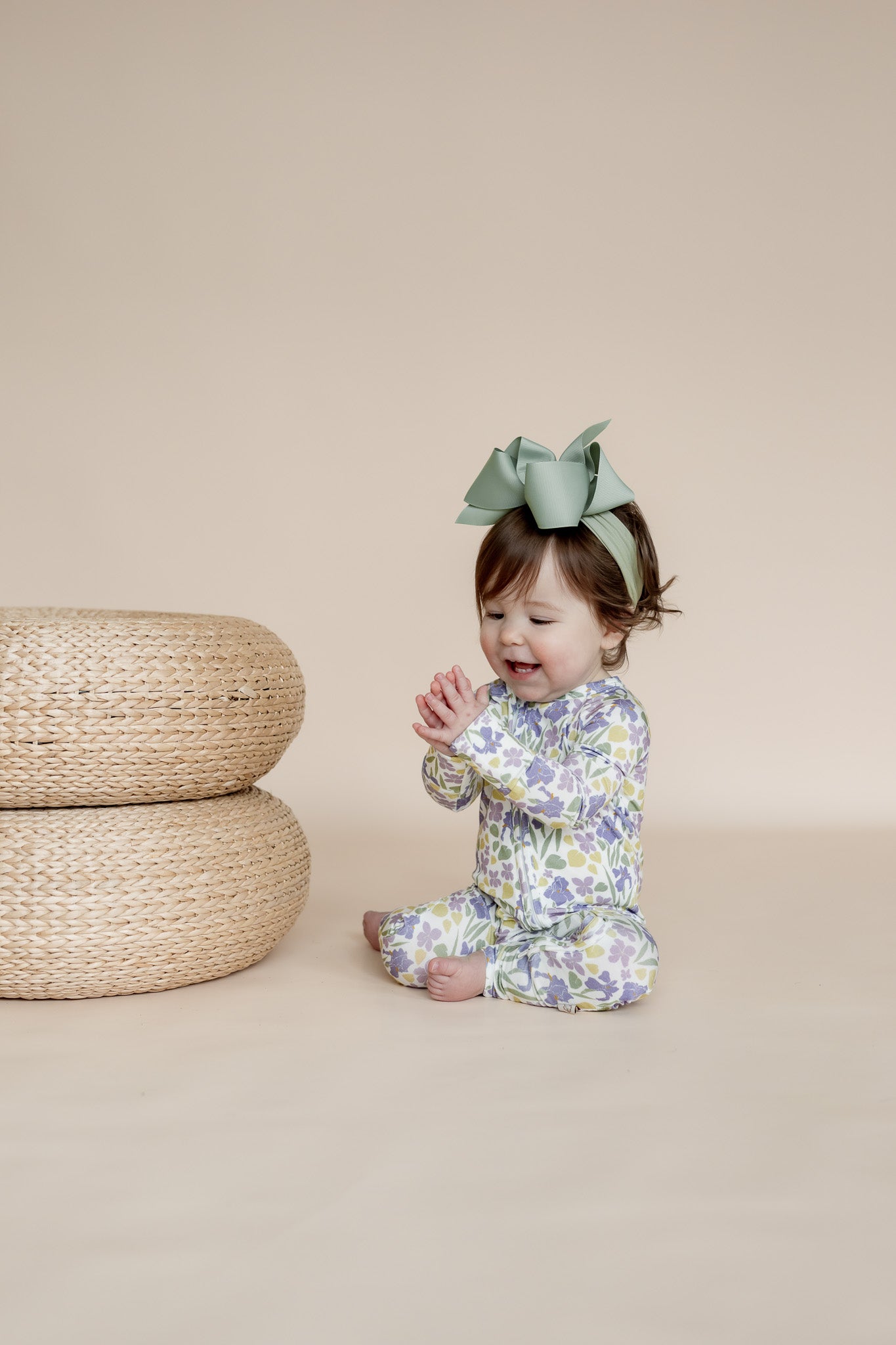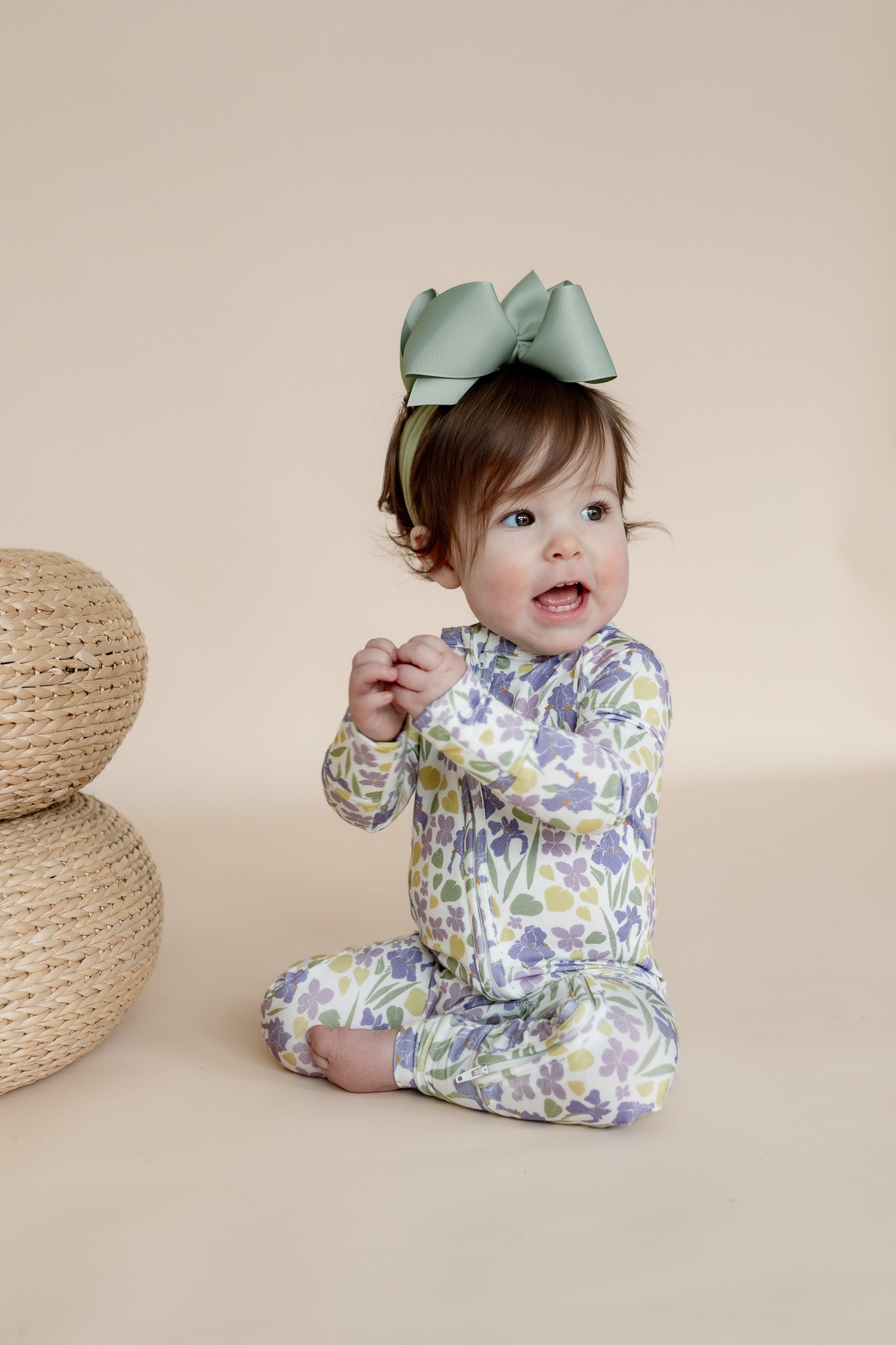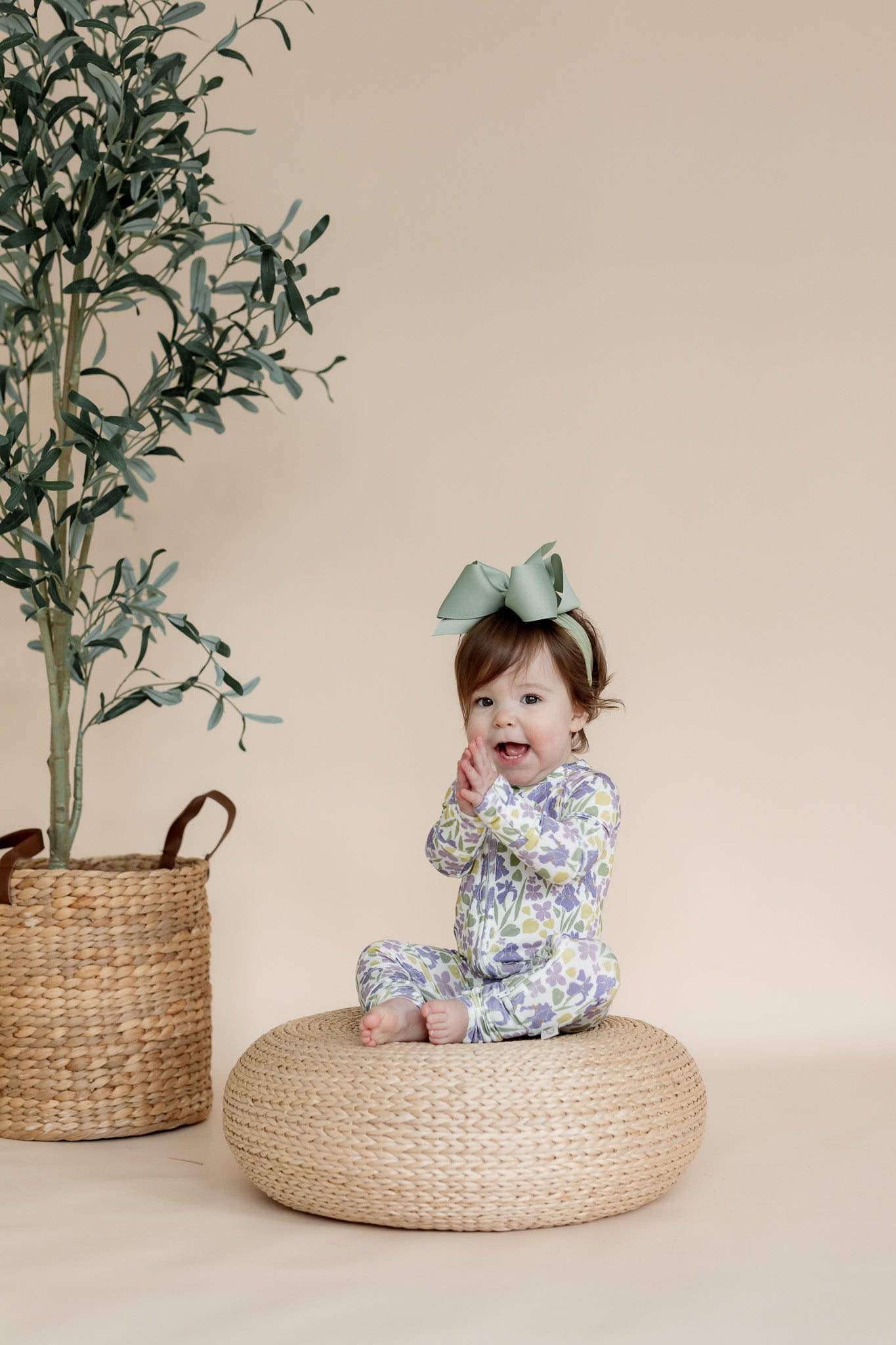 Featuring hand-drawn floral prints by a local artist, the Heirloom Florals Zipper Sleeper makes everyday wear feel special and adds a playful touch to bedtime.