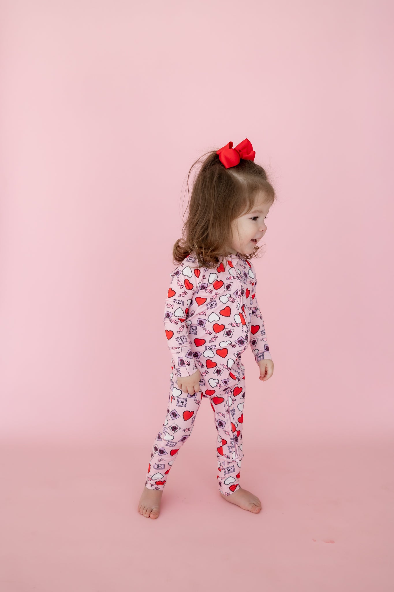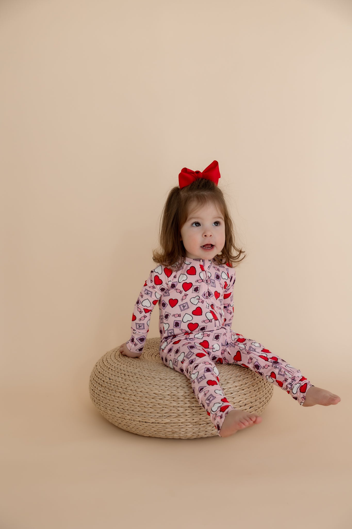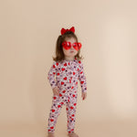 Featuring hand-drawn hearts prints by a local artist, the Love Notes Zipper Sleeper makes everyday wear feel special and adds a playful touch to bedtime.